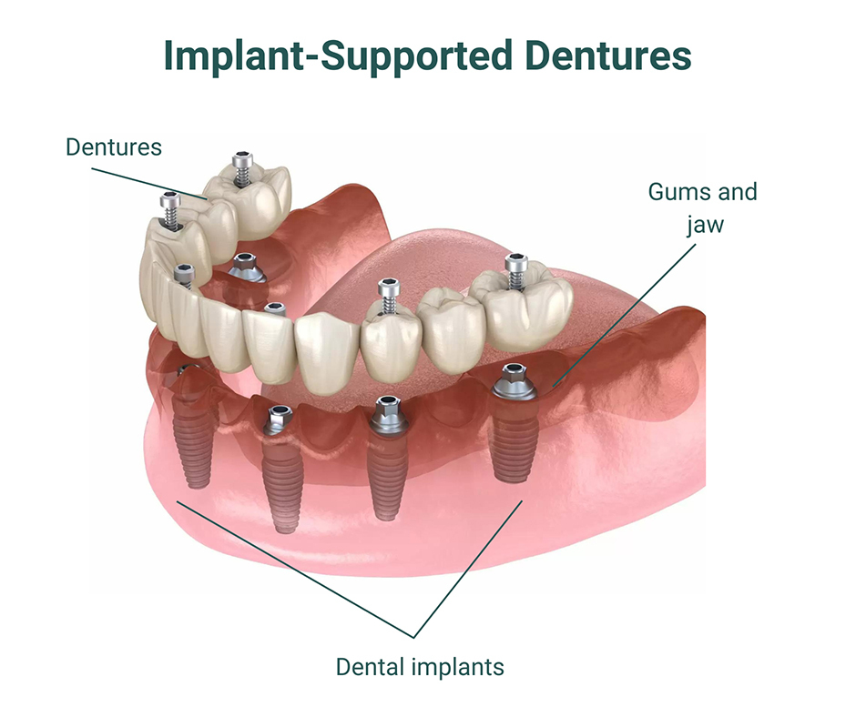 Traditional dentures can feel loose or uncomfortable during everyday activities. Implant-supported dentures attach securely to implants, offering better stability and confidence.
